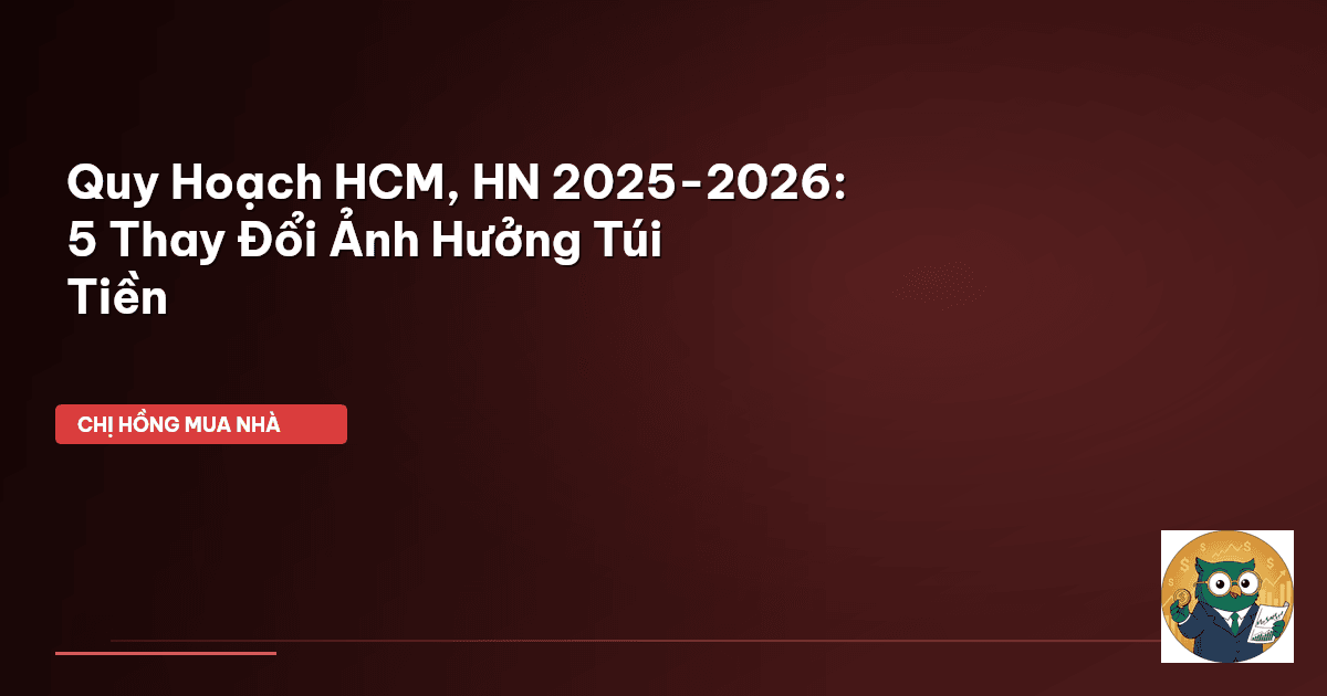 ⏱️ 15 phút đọc · 2809 từ Giới Thiệu: Quy Hoạch Mới – Chuyện Không Của Riêng Ai! Chào cả nhà Cú Thông Thái! Chị Hồng biết là nhắc đến "quy hoạch" nghe có vẻ khô khan, toàn giấy tờ sổ sách thôi đúng không? Nhưng thật ra, những thay đổi lớn trong quy hoạch của hai thành phố đầu tàu là TP.HCM và Hà Nội từ năm 2025-2026 này lại ảnh hưởng trực tiếp đến từng đồng tiền của gia đình mình đó, đặc biệt là túi tiền dùng để mua nhà, mua đất. Có khi các mẹ đang đau đầu tìm một căn chung cư hay mảnh đất nhỏ để…