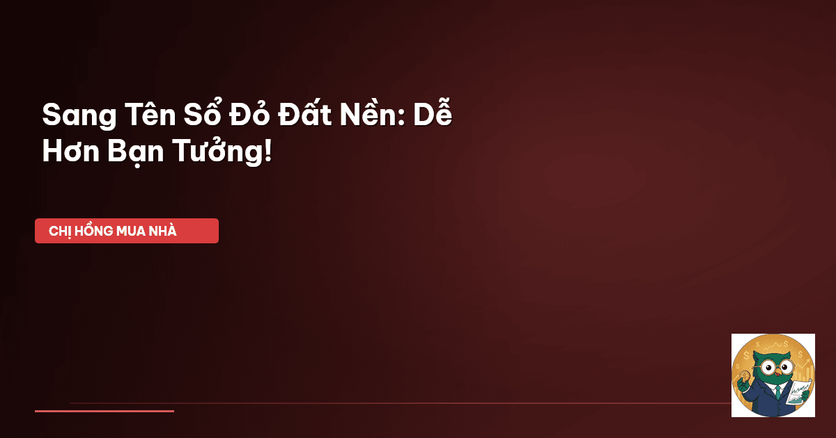 Chào mấy chị em, Chị Hồng lại đây! Mấy hôm nay, Chị Hồng nhận được nhiều câu hỏi về đất nền quá chừng. Nào là mua đất xong sang tên sao, chi phí bao nhiêu, giấy tờ lằng nhằng quá. Nghe là thấy lo rồi đúng không? Đừng lo nhé, hôm nay Chị Hồng sẽ 'mổ xẻ' cho mấy chị em thấy quy trình sang tên sổ đỏ đất nền này nó dễ ợt à, không như mình vẫn tưởng đâu!
