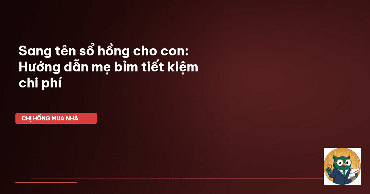 ⏱️ 15 phút đọc · 2940 từ Giới Thiệu: Sang tên sổ hồng cho con – Nỗi lòng cha mẹ và cách gỡ rối của Chị Hồng BĐS Chào cả nhà Cú Thông Thái! Lại là Chị Hồng BĐS đây. Mẹ bỉm nào mà chẳng lo toan đủ thứ, từ sữa bỉm, học phí cho con đến chi phí sinh hoạt hàng ngày. Ngay cả giá xăng RON 95 hôm nay ở Việt Nam đang là 23.540 VND/lít, rẻ hơn so với nhiều nước như Singapore (49.200 VND/lít) hay Thái Lan (34.203 VND/lít), thì mỗi khoản chi ra vẫn cần phải tính toán kỹ lưỡng. Vậy nên, khi đứng trước quyết đ…