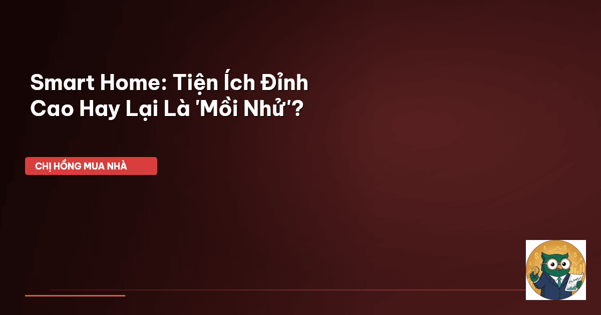 ⏱️ 11 phút đọc · 2064 từ Giới Thiệu Chào cả nhà mình, lại là Chị Hồng BĐS đây! Mấy nay đi đâu cũng nghe các mẹ bỉm, các chị em bàn tán xôn xao về mấy cái căn hộ Smart Home. Nào là đèn tự động, rèm cửa mở đóng bằng giọng nói, khóa vân tay, camera thông minh đủ kiểu. Nghe thì 'chanh sả' lắm, tiện lợi khỏi bàn, đúng không ạ? Nhưng mà khoan vội 'chốt đơn' nha các mẹ! Giữa cái tiện nghi ngút trời ấy, liệu có ẩn chứa 'mồi nhử' nào không? Tiền mình đổ vào có thật sự đáng 'đồng tiền bát gạo' hay chỉ là …