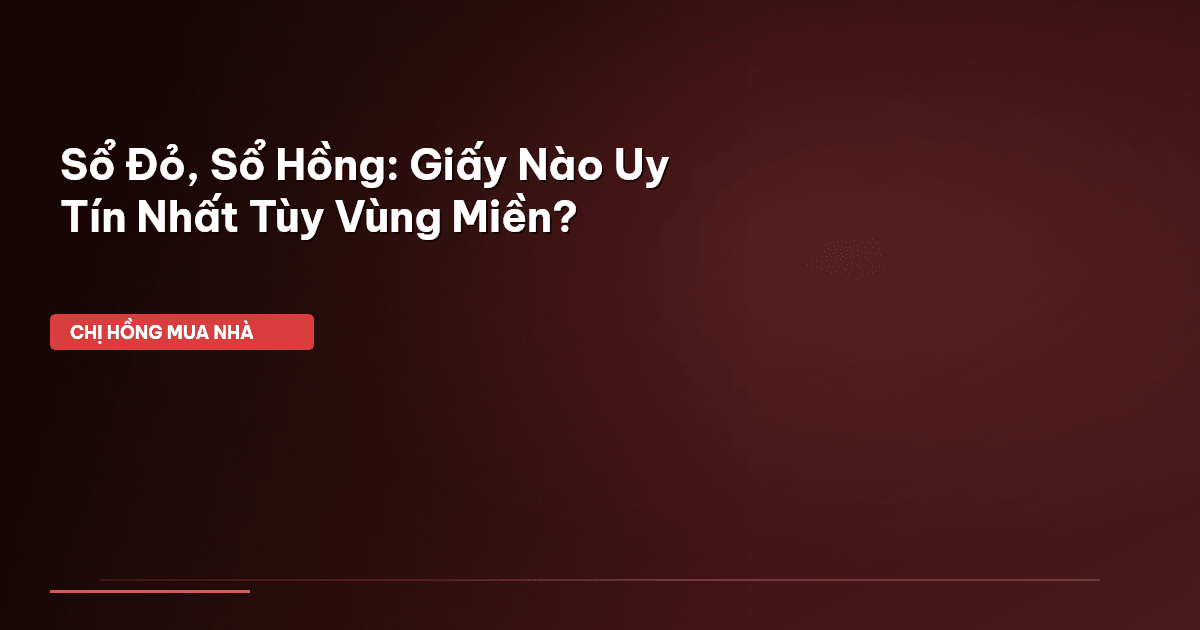 ⏱️ 12 phút đọc · 2260 từ Giới Thiệu: Nỗi Lo Về Sổ Đỏ, Sổ Hồng Của Các Gia Đình Mua Nhà Chào các mẹ, các bố đang ấp ủ giấc mơ an cư lạc nghiệp! Chị Hồng BĐS biết nhiều gia đình mình, đặc biệt là các cặp vợ chồng trẻ lần đầu mua nhà, hay lăn tăn về mấy cái tên 'Sổ đỏ', 'Sổ hồng' lắm đúng không? Nào là không biết sổ nào mạnh hơn, sổ nào an toàn hơn, rồi ở miền Bắc thì dùng sổ này, miền Nam thì dùng sổ kia, nghe mà rối tung hết cả lên. Đúng là vấn đề giấy tờ nhà đất luôn là chuyện quan trọng nhất nh…