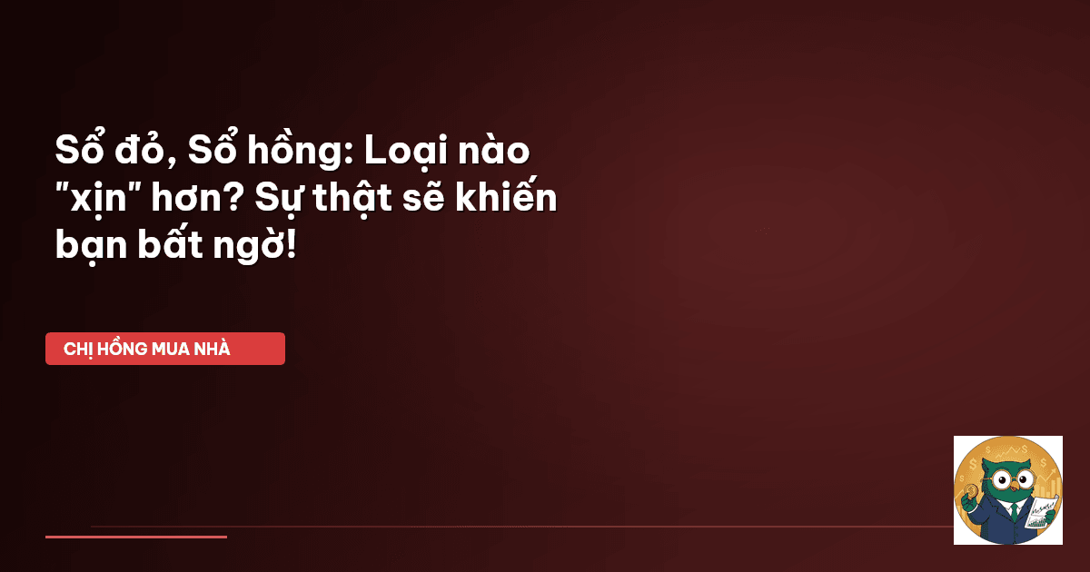 Chào cả nhà Cú Thông Thái yêu quý của Chị Hồng! Mấy nay lướt mạng, chị thấy nhiều mẹ bỉm, đặc biệt là các bạn trẻ lần đầu đi mua nhà, cứ đau đáu mãi chuyện sổ đỏ hay sổ hồng thì loại nào "xịn" hơn, loại nào an toàn hơn. Thiệt tình, cái này cứ như chuyện hỏi con ăn dặm cháo hay bột ngon hơn vậy đó, ai cũng có ý kiến riêng, làm mình hoang mang ghê!