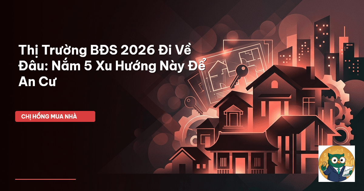 ⏱️ 22 phút đọc · 4339 từ Giới Thiệu: Bức Tranh Toàn Cảnh Thị Trường BĐS 2026 — Cơ Hội Hay Thách Thức Cho Các Gia Đình Trẻ? Chào các mẹ, lại là Chị Hồng BĐS đây! Mấy hôm nay lướt mạng xã hội, Hồng thấy các mẹ bỉm sữa nhà mình bàn tán xôn xao. Người thì hỏi 'Lãi suất hạ rồi, có nên tất tay mua nhà không chị?', người lại lo 'Thấy báo nói thị trường đóng băng, nhỡ mua xong nhà lại rớt giá thì chết dở'. Thật sự, đứng giữa một rừng thông tin trái chiều, đến Chị Hồng làm trong ngành còn thấy rối, huống…
