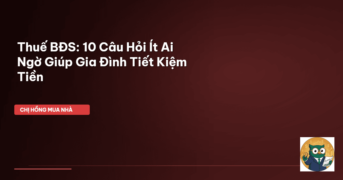 ⏱️ 14 phút đọc · 2683 từ Giới Thiệu: Thuế BĐS — Không Còn Là Nỗi Lo Của Mẹ Bỉm! Chào cả nhà Cú Thông Thái! Chị Hồng biết là các mẹ bỉm, các gia đình mình ngày ngày phải lo toan bao nhiêu thứ, từ tiền học cho con, tiền chợ búa, đến tiền xăng xe đi làm. Chẳng hạn, cái giá xăng RON 95 ở Việt Nam mình hôm nay là 23.540 VND/lít , thấy cũng ổn áp hơn nhiều so với Singapore tận 74.720 VND/lít đúng không? Vậy mà cứ nghĩ đến chuyện mua bán nhà đất là lại "rối não" với mớ giấy tờ, đặc biệt là các khoản th…