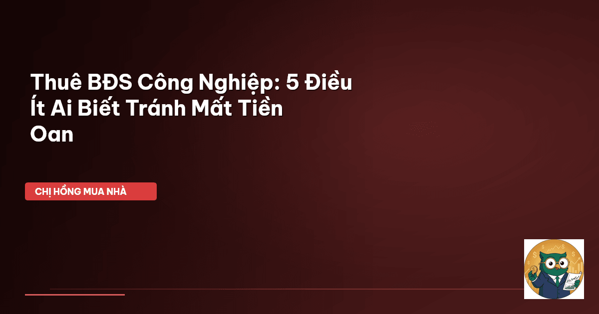 ⏱️ 13 phút đọc · 2451 từ Giới Thiệu: Thuê BĐS Công Nghiệp Mà Cứ Tưởng Dễ Ợt? Chào cả nhà Cú Thông Thái, Chị Hồng đây! Mấy nay thị trường BĐS công nghiệp đang nóng hầm hập các mẹ bỉm ạ. Nào là nhà đầu tư nước ngoài đổ bộ, nào là các nhà máy, kho bãi cứ mọc lên như nấm. Điều này cho thấy kinh tế mình đang có đà phát triển rất tốt. Nhiều doanh nghiệp lớn bé đều đang ráo riết tìm kiếm mặt bằng để mở rộng sản xuất, kinh doanh, hoặc làm kho bãi lưu trữ hàng hóa. Nghe thì có vẻ màu mỡ, nhưng mà chị em …