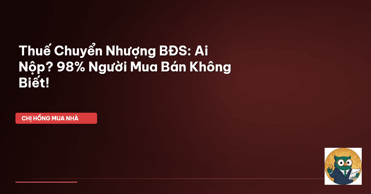 ⏱️ 13 phút đọc · 2433 từ Giới Thiệu: Thuế Chuyển Nhượng BĐS — Câu Chuyện Của Mọi Gia Đình Chào cả nhà, Chị Hồng BĐS đây! Hôm nay, mình cùng "mổ xẻ" một chủ đề mà nghe thì khô khan nhưng lại ảnh hưởng trực tiếp đến ví tiền của chúng ta khi mua bán nhà: Thuế chuyển nhượng bất động sản (BĐS). Cứ mỗi lần giao dịch, y như rằng câu hỏi "Ai là người chịu trách nhiệm nộp thuế này đây?" lại khiến nhiều gia đình đau đầu. Nhiều khi, chỉ vì không hiểu rõ mà người bán thì thấy mình bị hớ, người mua thì méo m…