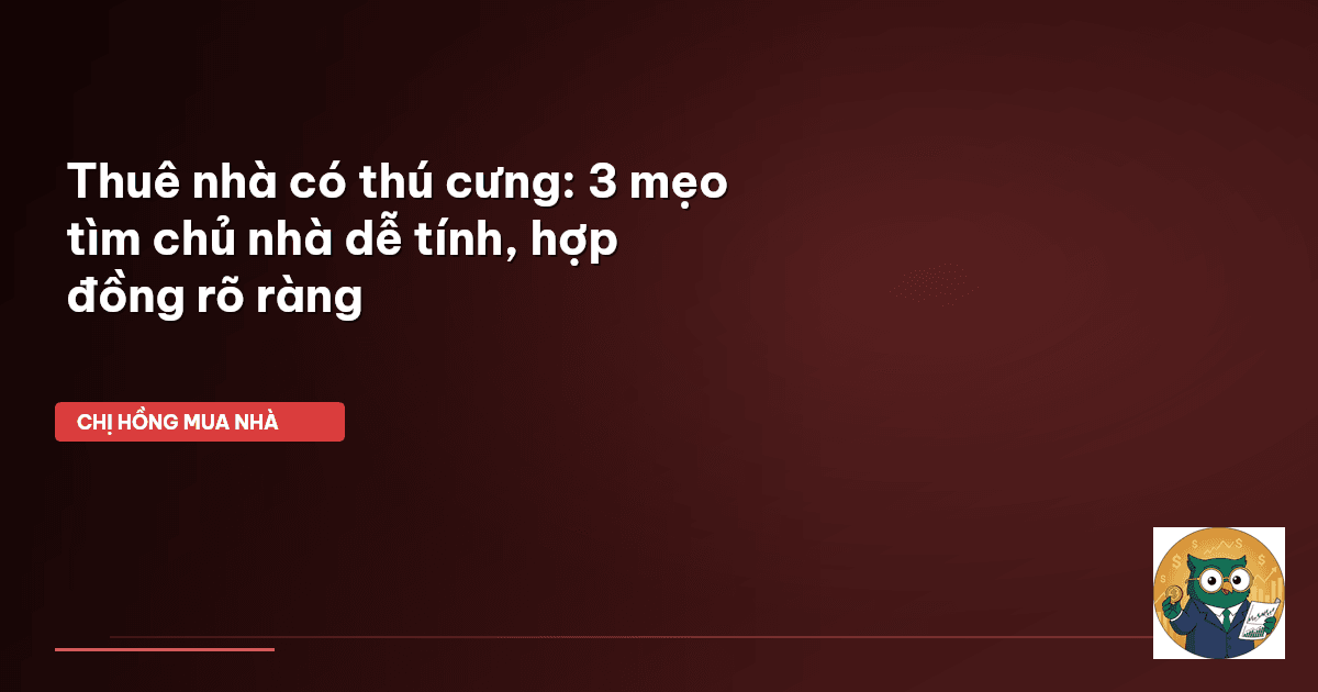 ⏱️ 12 phút đọc · 2324 từ Giới Thiệu: Nỗi lo chung của các "Sen" khi tìm nhà Chào cả nhà Cú Thông Thái! Chị Hồng biết là mấy mẹ bỉm, mấy ông bố trẻ ai cũng thương con cái, và dĩ nhiên, mấy đứa "con" bốn chân cũng là thành viên không thể thiếu trong gia đình mình, đúng không? Nhưng mà, có ai từng đau đầu, "vò đầu bứt tai" mỗi khi chuyển nhà mà phải tìm chỗ chấp nhận cho thú cưng ở cùng không? Chị Hồng hiểu mà, cảm giác như mình đi xin vậy, rất khó chịu! Thực tế, việc tìm thuê một căn nhà cho phép …