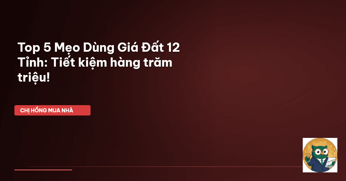 Chào cả nhà Cú Thông Thái! Chị Hồng biết nhiều gia đình đang ấp ủ giấc mơ có mảnh đất riêng ở các tỉnh, vừa để an cư, vừa để đầu tư. Nhưng nói thật lòng, mua đất tỉnh đâu có đơn giản chỉ là nhìn cái giá niêm yết trên giấy tờ đâu đúng không các mẹ? Nhiều khi mình cứ nghĩ "À, đất chỗ này rẻ hơn thành phố", xong rồi về ở mới tá hỏa ra bao nhiêu là chi phí phát sinh mà mình chẳng lường trước được. Đó là lý do hôm nay, Chị Hồng sẽ "bật mí" cho cả nhà top 5 mẹo dùng giá đất 12 tỉnh hiệu quả nhất, giúp mình không chỉ mua được giá tốt mà còn tối ưu được tổng chi phí sinh hoạt luôn đó!