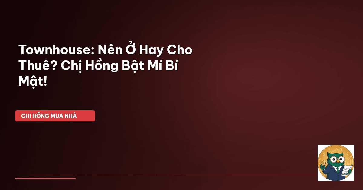 ⏱️ 13 phút đọc · 2402 từ Giới Thiệu: Townhouse — Bài Toán Khó Của Nhiều Gia Đình Việt! Chào cả nhà Cú Thông Thái của Chị Hồng nhé! Dạo này, Chị Hồng nhận được nhiều câu hỏi lắm, mà câu nào cũng trăn trở, cũng băn khoăn y như ngày xưa Chị Hồng mới lập gia đình vậy đó. Nào là: "Chị ơi, vợ chồng em mới có chút vốn, nên mua cái townhouse để ở luôn cho ổn định hay là mua rồi cho thuê kiếm thêm thu nhập ạ?" . Nghe xong là biết ngay, đây chính là nỗi niềm chung của rất nhiều gia đình Việt mình rồi. Ai …