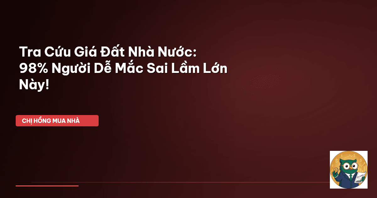⏱️ 15 phút đọc · 2851 từ Giá Đất Nhà Nước: Cứ Tưởng Rẻ Hóa Ra Lại Đắt! Chào cả nhà Cú Thông Thái! Chị Hồng BĐS hôm nay muốn tâm sự về một chủ đề mà nhiều mẹ bỉm, bố bỉm hay các bạn trẻ đang ấp ủ giấc mơ nhà cửa rất dễ mắc phải. Đó là chuyện tra cứu giá đất Nhà nước . Nghe thì có vẻ đơn giản, cứ lên mạng gõ một cái là ra ngay đúng không? Nhưng tin chị đi, 98% người dân của mình đã và đang mắc một sai lầm cực lớn, khiến bao nhiêu công sức dành dụm có thể bốc hơi đấy! Mấy nay, chị nhận được nhiều c…