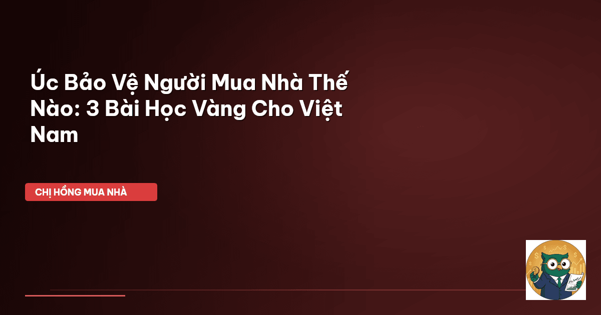 ⏱️ 10 phút đọc · 1903 từ Giới Thiệu: Đừng Để Tiền Mồ Hôi Biến Thành Rủi Ro Không Đáng Có! Chào cả nhà Cú Thông Thái! Chị Hồng biết là hành trình tìm mua một căn nhà an cư lạc nghiệp hay đầu tư sinh lời luôn đầy ắp lo toan, nhất là ở thị trường Việt Nam mình. Nhiều khi thấy quảng cáo lung linh mà lại lo ngay ngáy về pháp lý, về chất lượng, về tiến độ . Thế nên, hôm nay chị em mình cùng "đột nhập" thị trường bất động sản (BĐS) Úc xem họ làm thế nào để người mua nhà luôn được bảo vệ, rồi mình rút r…
