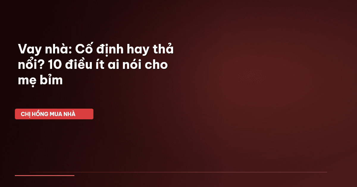 ⏱️ 13 phút đọc · 2498 từ Giới Thiệu: Nỗi Lo "Lãi Suất Nhảy Múa" Của Mẹ Bỉm Khi Mua Nhà Các mẹ ơi, Chị Hồng biết nhiều gia đình mình đang đau đáu một nỗi lo chung: vay tiền mua nhà thì nên chọn lãi suất cố định hay thả nổi? Cứ nghĩ đến khoản vay bạc tỷ kéo dài 15-20 năm là lại toát mồ hôi hột. Lãi suất mà cứ như "nhảy múa" thì làm sao mình yên tâm lo cho con cái, vun vén gia đình được phải không nào? Chuyện lãi suất nó không chỉ là con số trên giấy tờ đâu các mẹ. Nó ảnh hưởng trực tiếp đến bữa ăn…